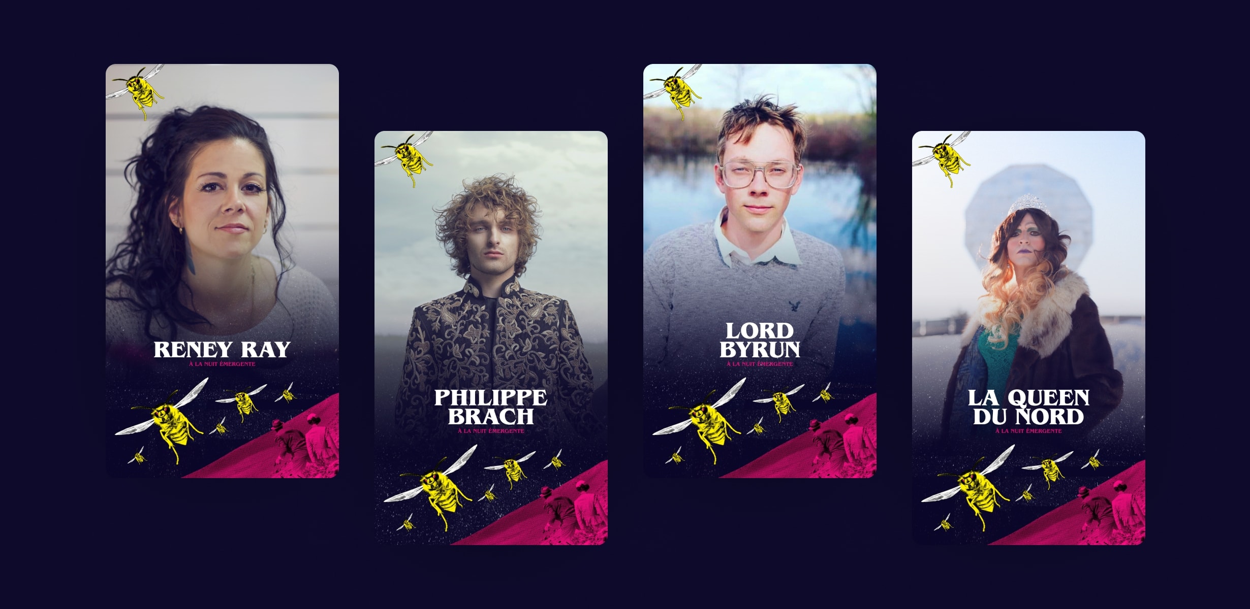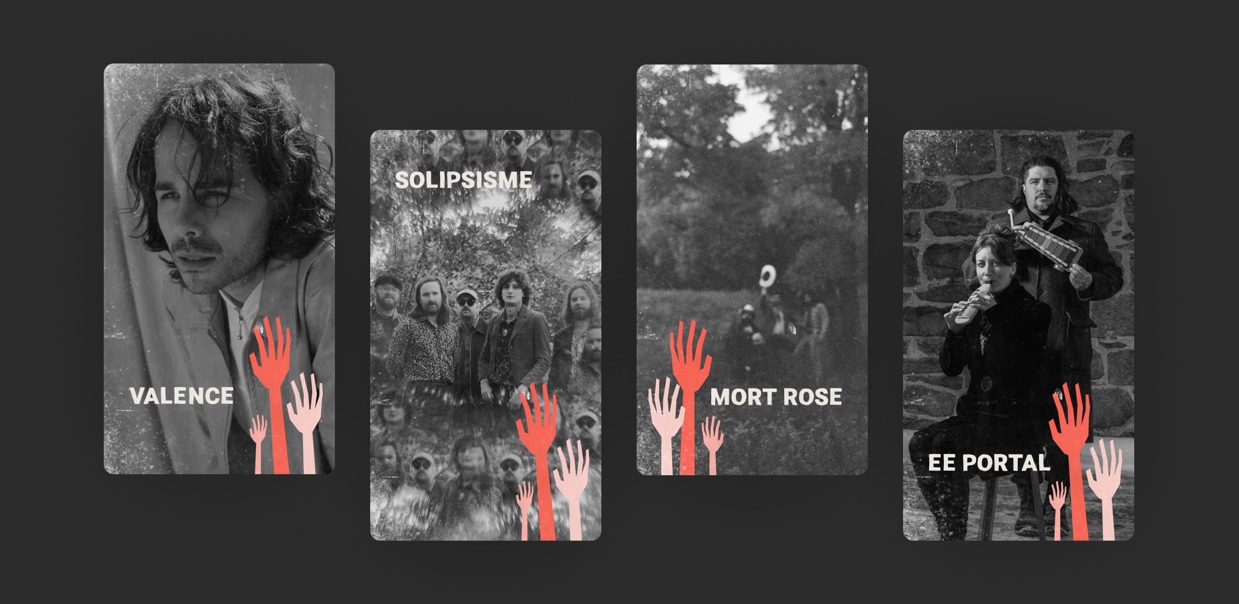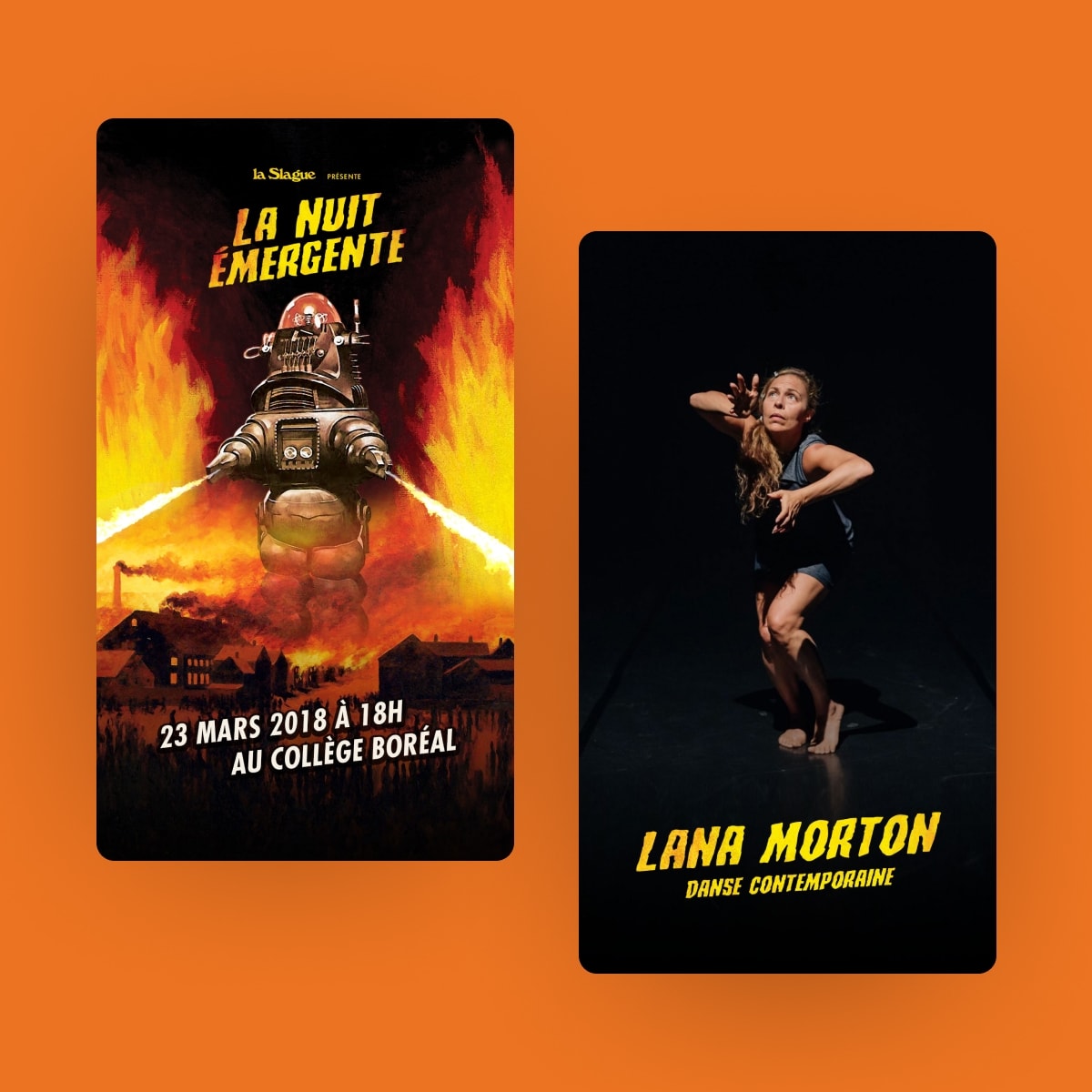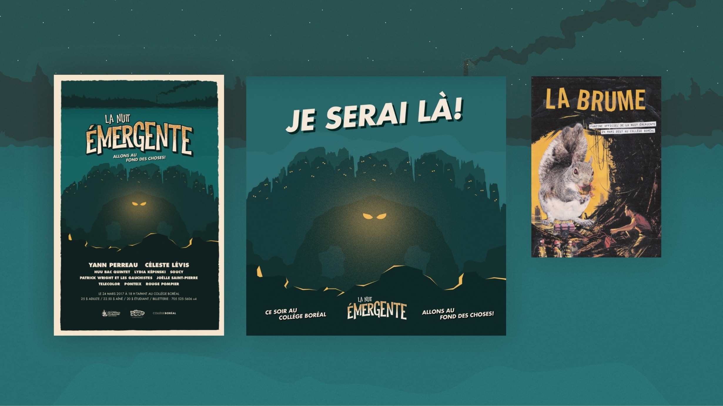 En collaboration avec l’équipe de La Slague, Studio123 en crée les monstrueuses images de marque depuis 2014. Chaque année, un nouveau sinistre suppôt devient le porte-étendard de l’événement et hante les spectateurs à travers de nombreux livrables dont des affiches, des bannières web, des fanzines, des animations, des lanières et de la signalisation. La combinaison de ces éléments crée une campagne immersive qui met la scène pour la Nuit émergente où la rencontre entre musique et mystère se déploie de manière inattendue.