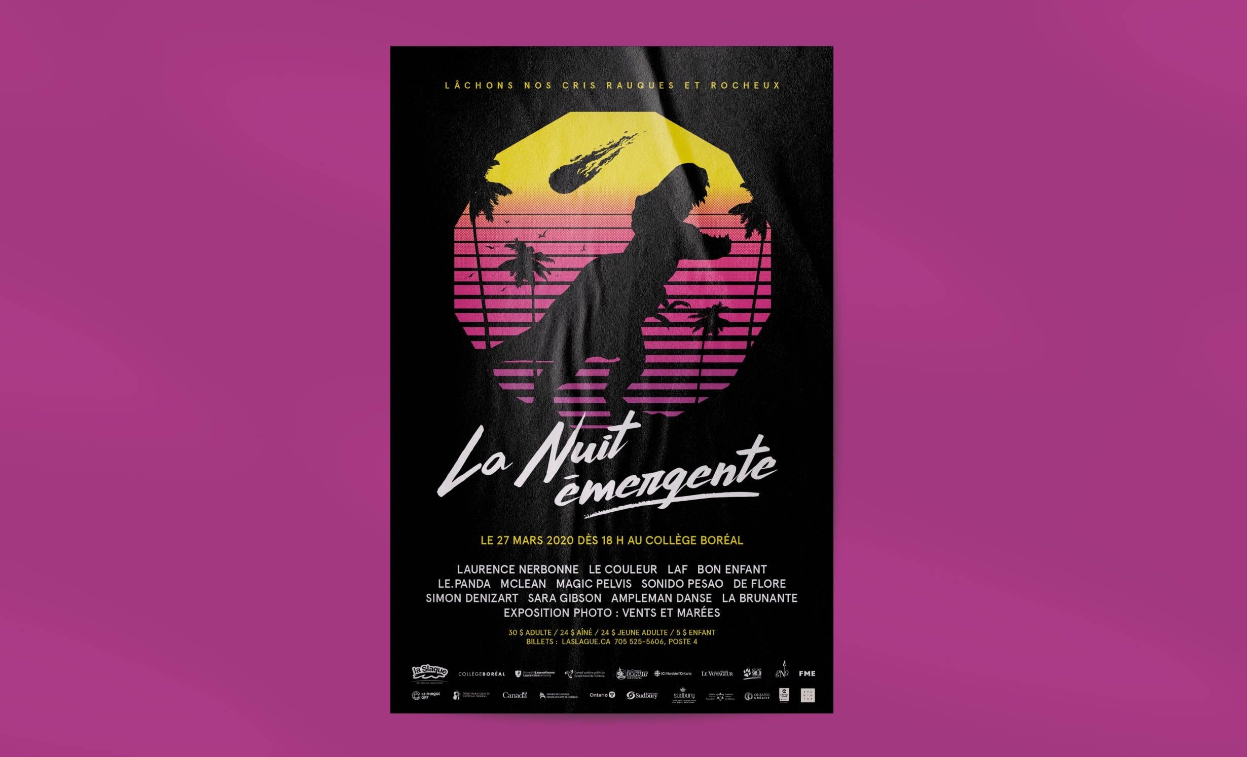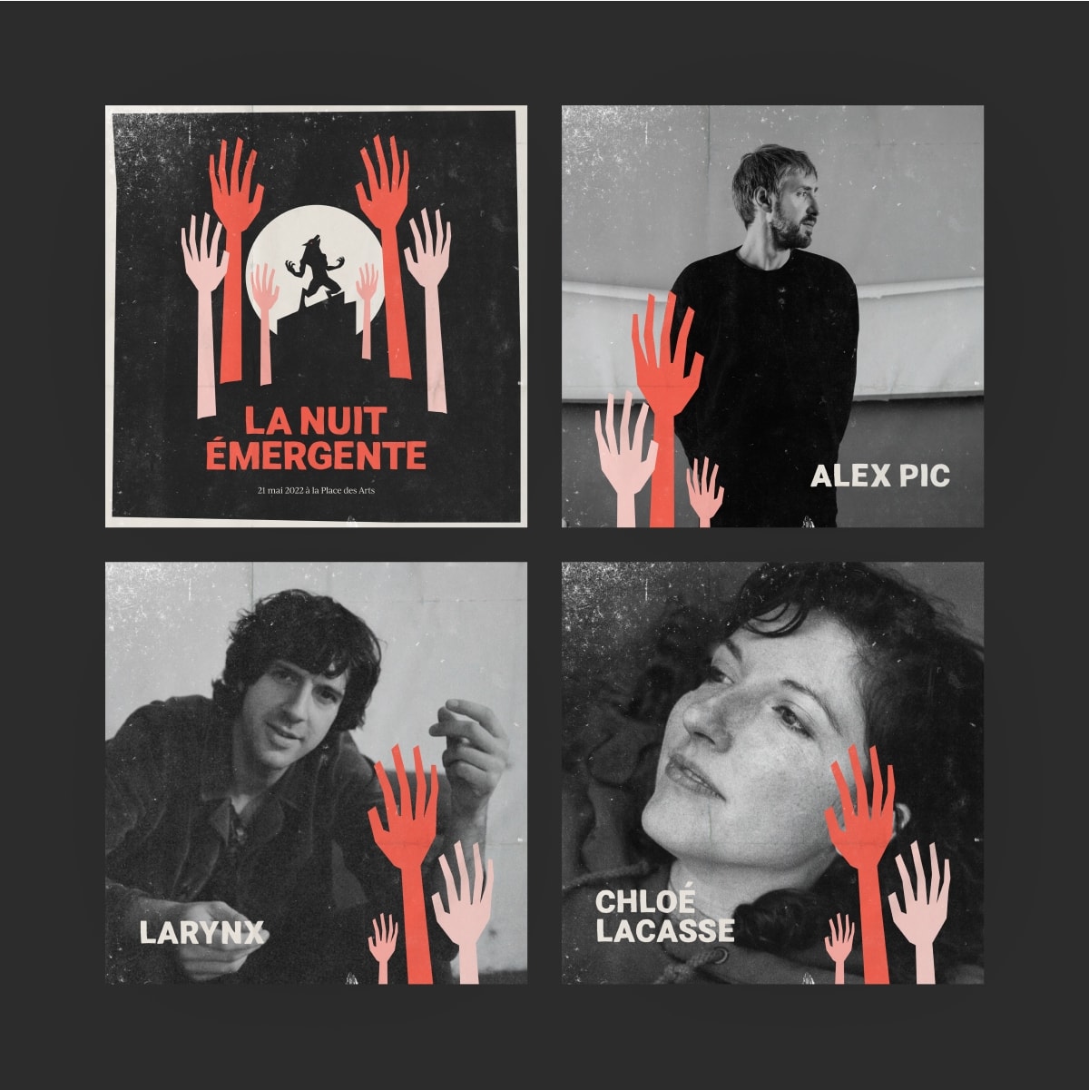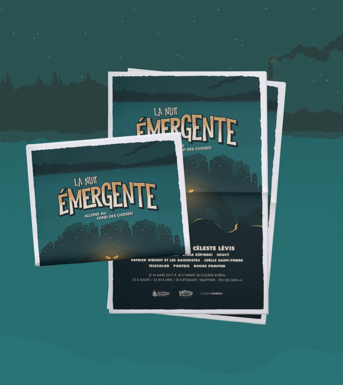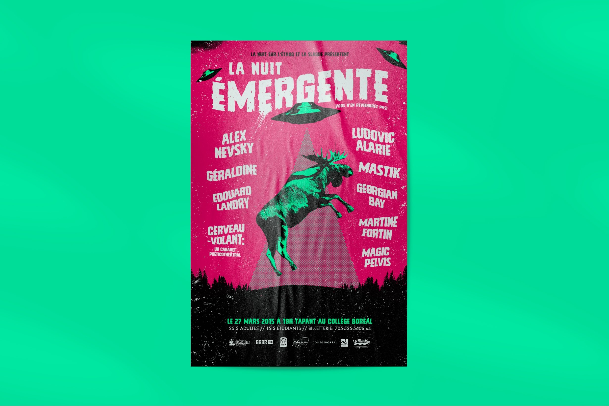 La Nuit émergente est une aventure musicale dont vous êtes maître et où il n’y a pas de mauvais choix. Elle réunit une variété d’artistes francophones émergents en provenance de l’Ontario et du Québec, et chaque mouture transforme une collection de lieux inusités en scènes intimes afin d’offrir une expérience musicale unique.