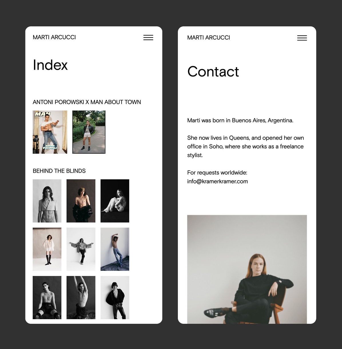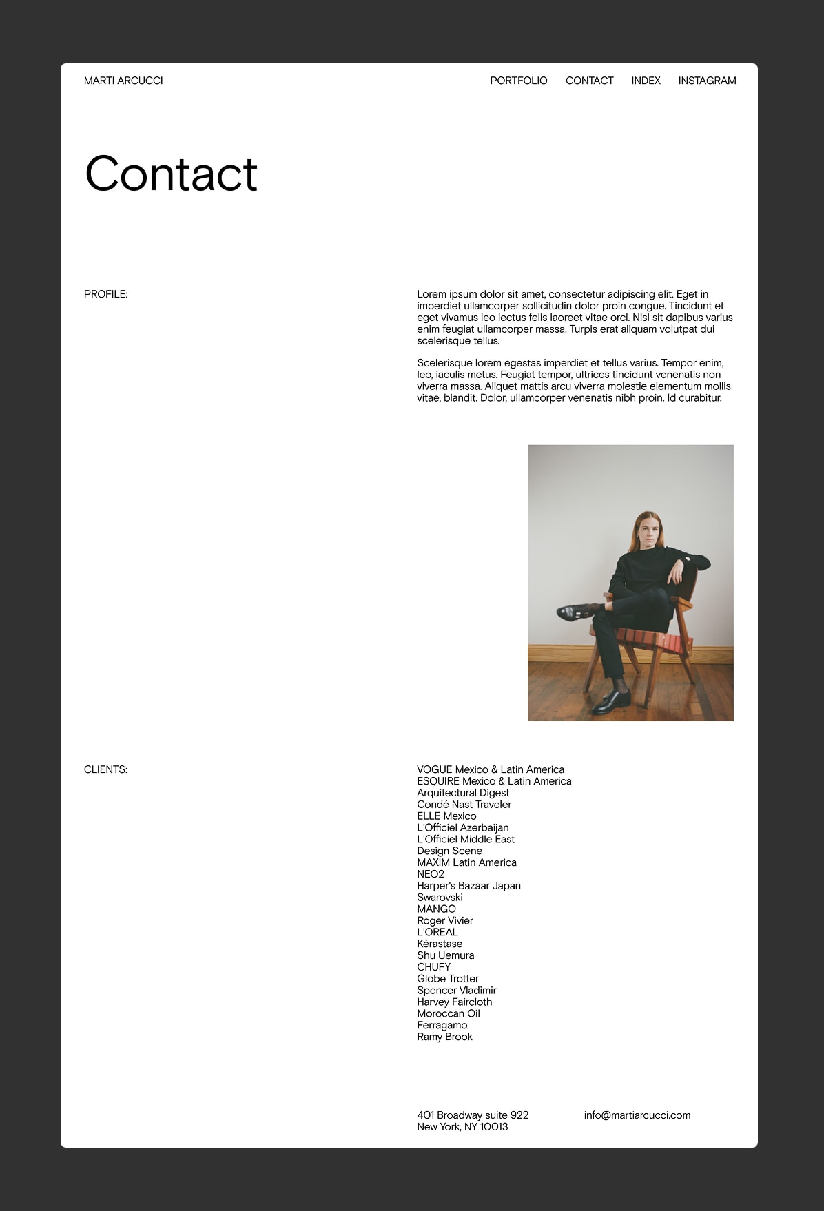 Nous avons collaboré avec notre amie, la styliste de mode au rayonnement international Marti Arcucci pour créer un site web à l’image de la beauté et de l’originalité qu'elle apporte à son travail. Le site met en valeur ses collaborations avec certaines des plus grandes marques mondiales et des personnalités iconiques, grâce à une mise en page qui marie simplicité et mouvement raffiné. Une transition fluide entre les projets permet d'immerger les utilisateurs, tandis que des détails graphiques comme des compteurs animés et un défilement horizontal inspiré des galeries ajoutent fonctionnalité et élégance. Le résultat est un portfolio numérique aussi soigné et réfléchi que les projets qu’il présente.