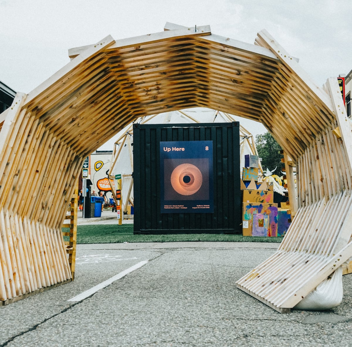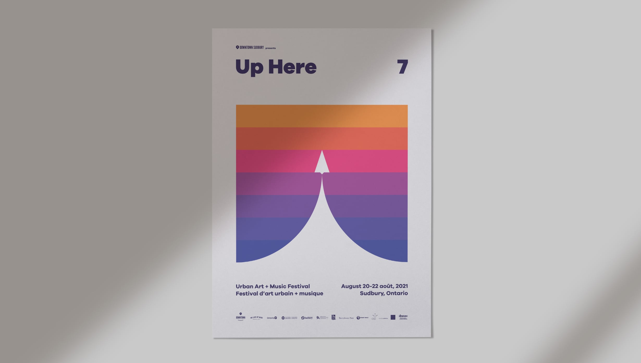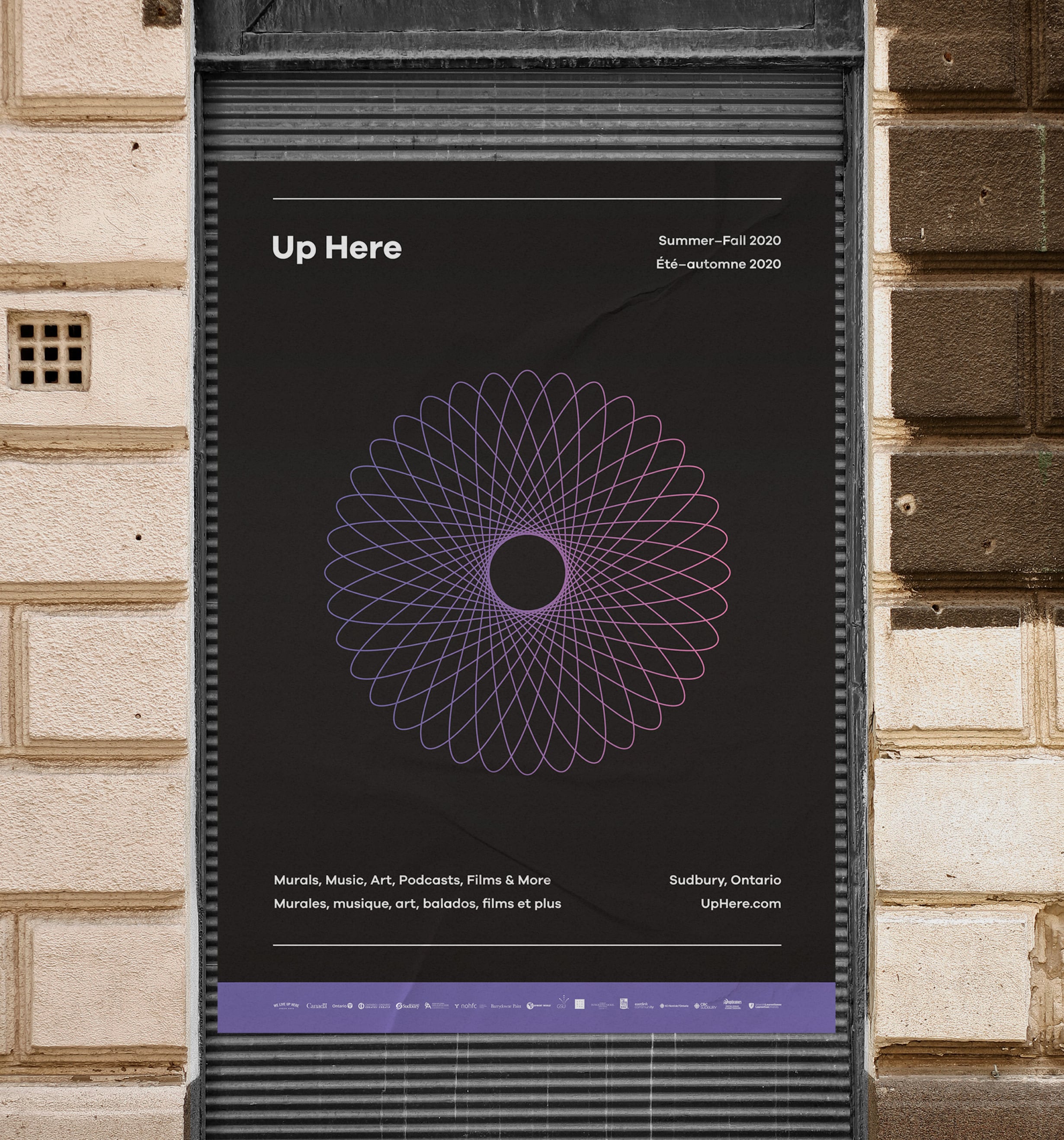 Up Here est un festival indépendant d'art urbain et de musique émergente qui a lieu chaque année dans l'étrange et curieuse ville de Sudbury, en Ontario. Chaque été, Up Here rassemble des dizaines de muralistes, de musiciens et d'artistes d'installation pour transformer le centre-ville de Sudbury en une galerie d'art urbain vibrante et captivante.