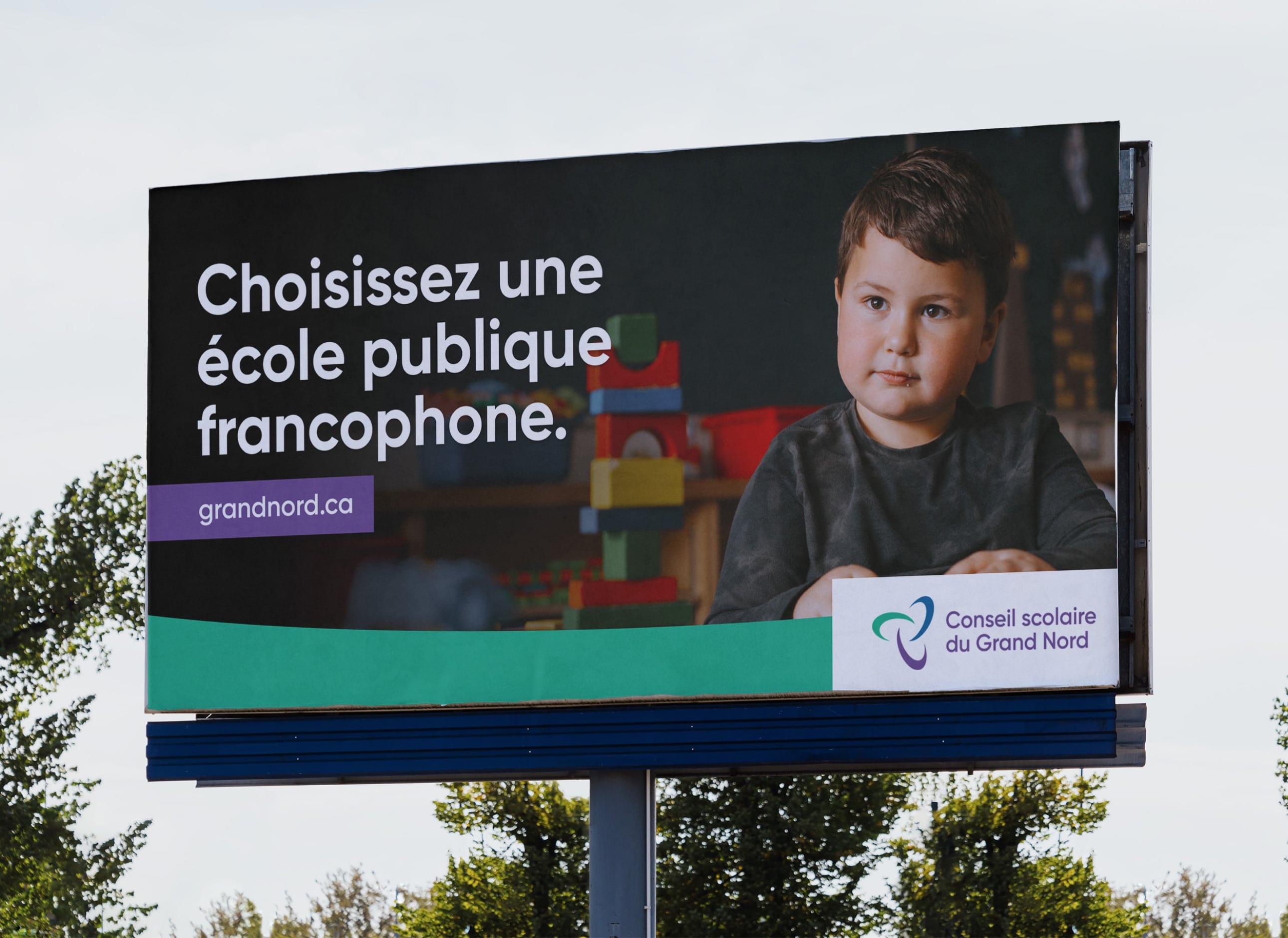 We have been working with Conseil scolaire du Grand Nord for over a decade. In 2015, we were awarded the contract to become their agency of record. We were tasked with developing communications and brand strategies to position Northern Ontario's largest French public school board as a leader in inclusive, modern, and inspiring education across Northern Ontario.