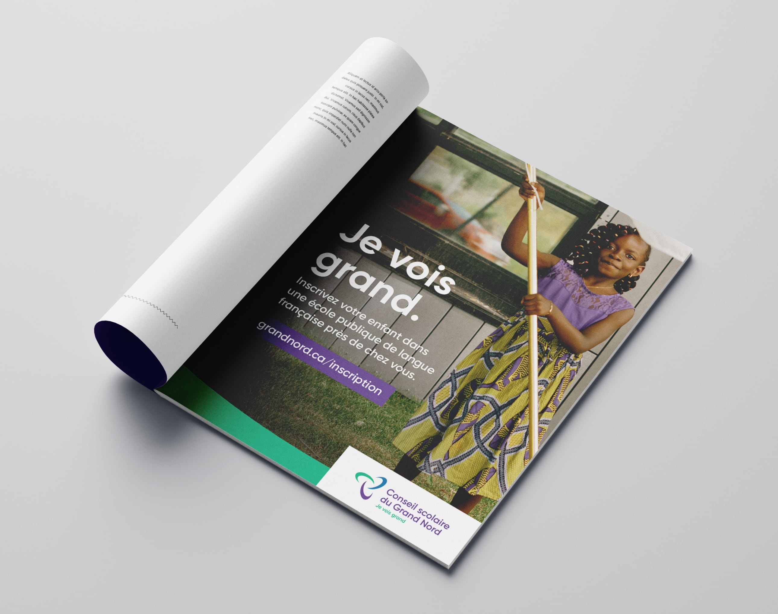 Finally, to celebrate their 25th anniversary, we launched a mature new brand name and refined visual identity that sets Conseil scolaire du Grand Nord on track for another 25 years of dreaming big.