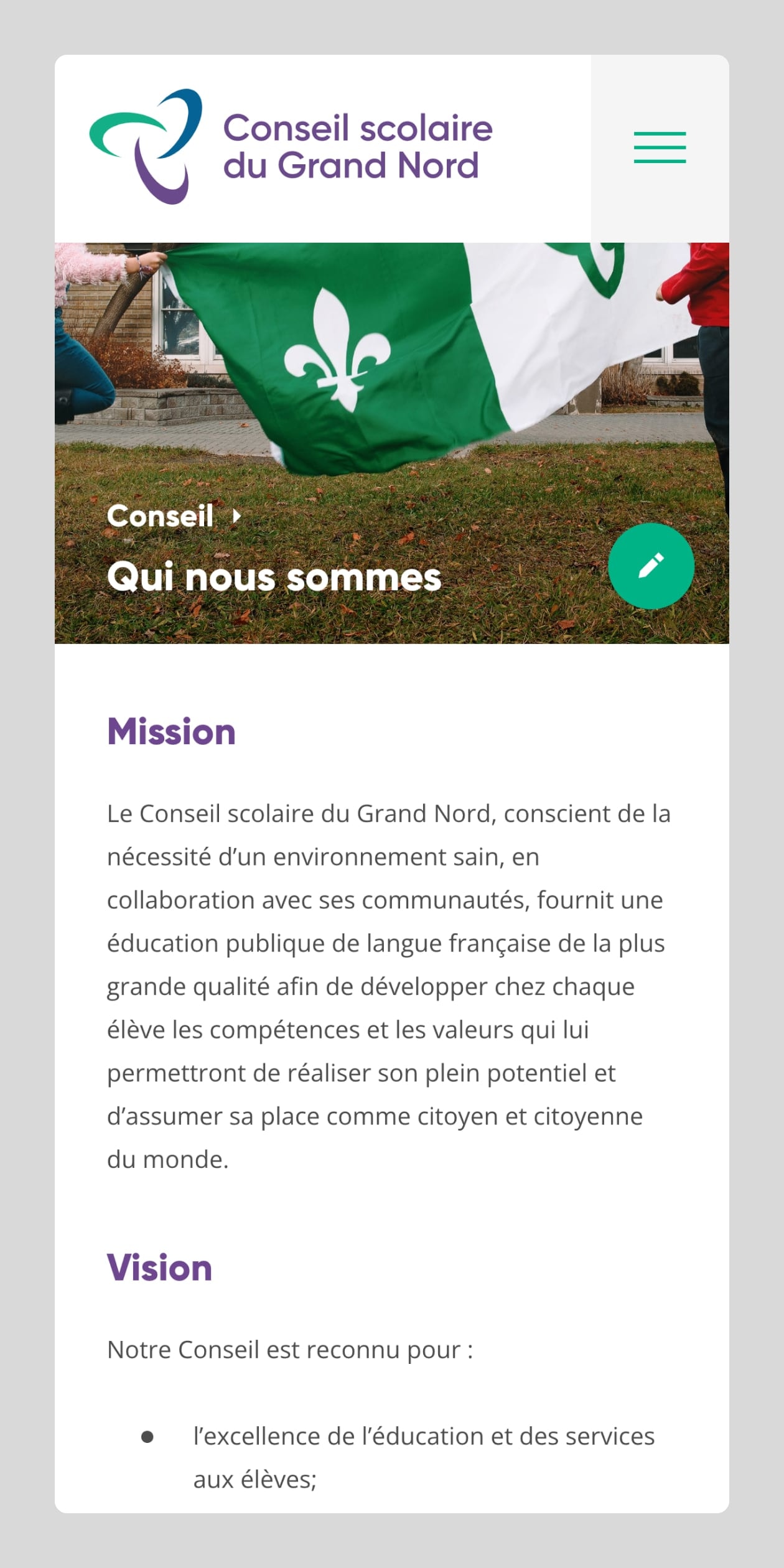 A leader in new educational approaches, Conseil scolaire du Grand Nord offers programs that fulfill the changing needs of students from year to year. Recognized for its human approach and inclusive values, Conseil scolaire du Grand Nord is in a league of its own, offering innovative and creative teaching that promotes open-minded thinking.
