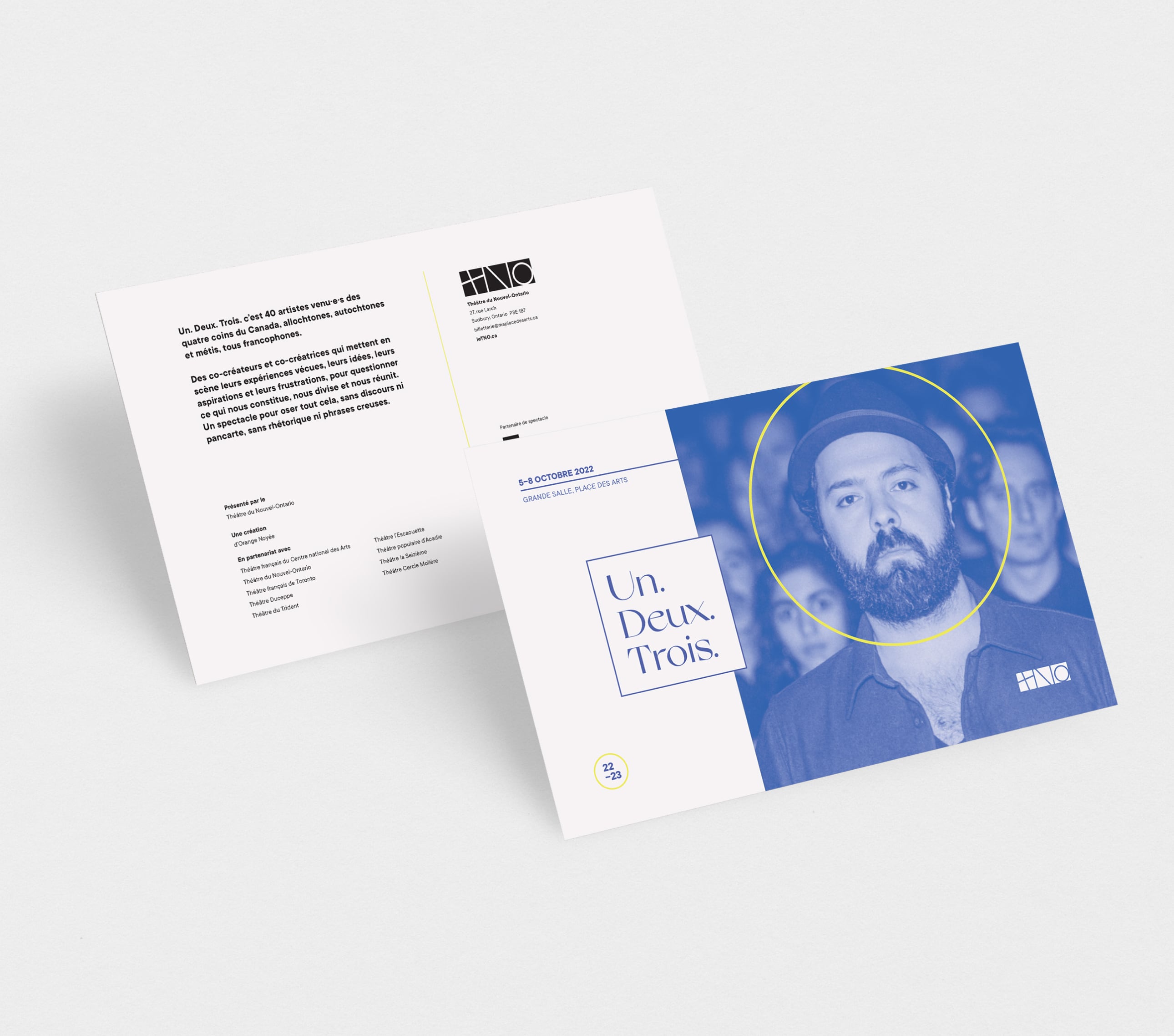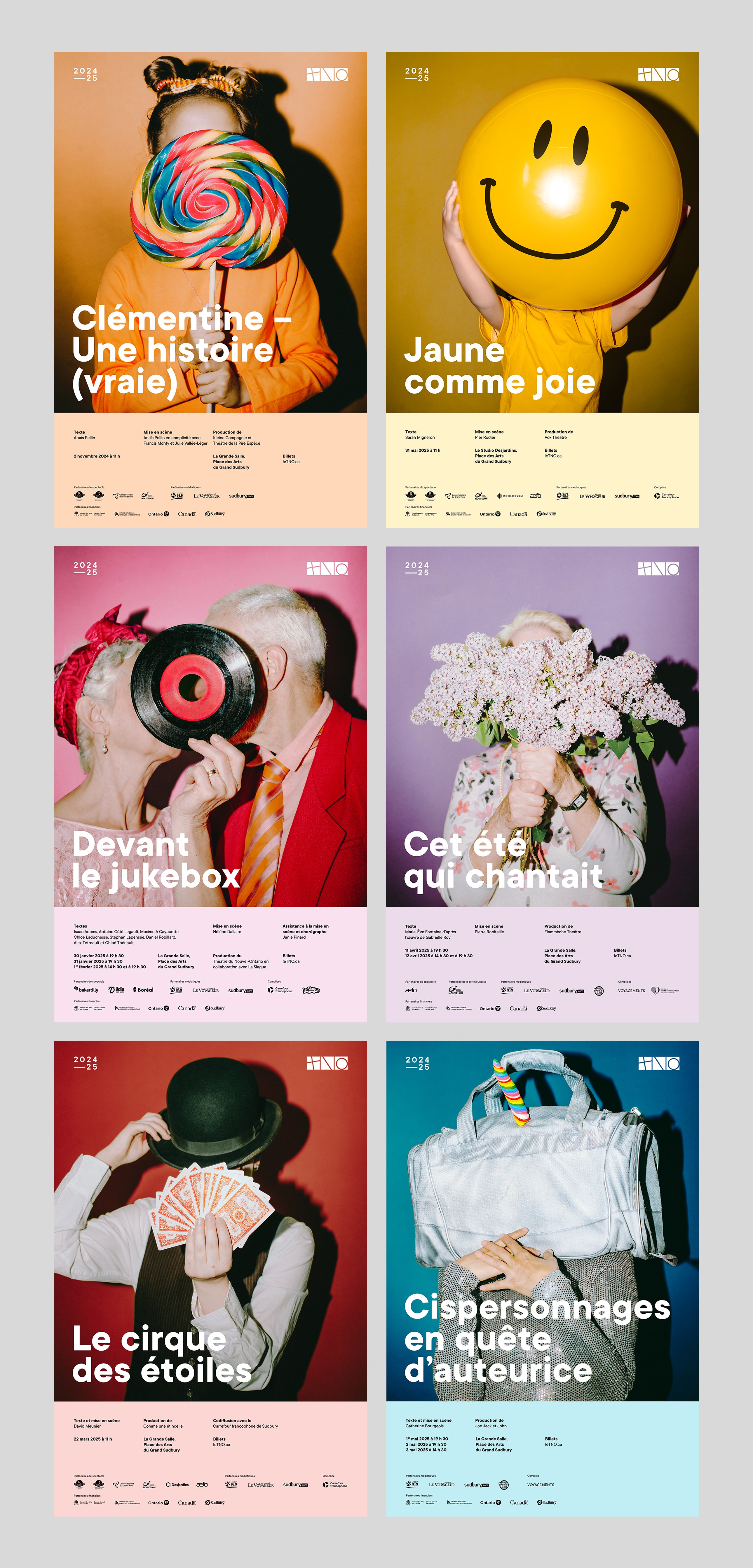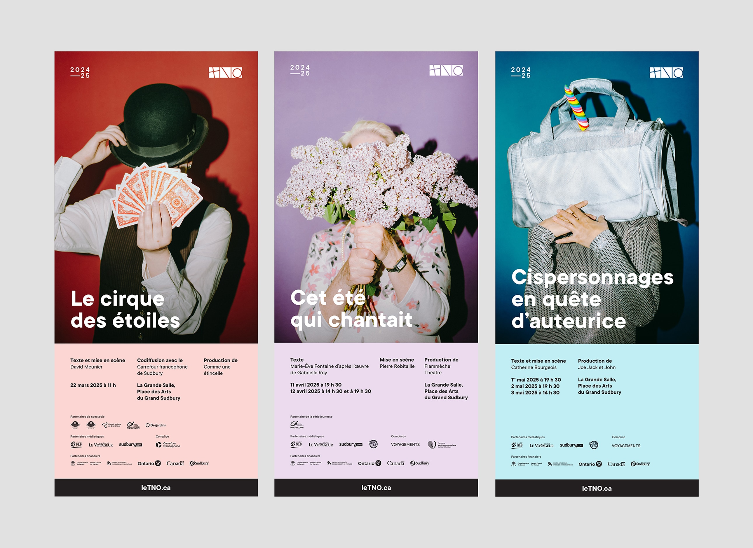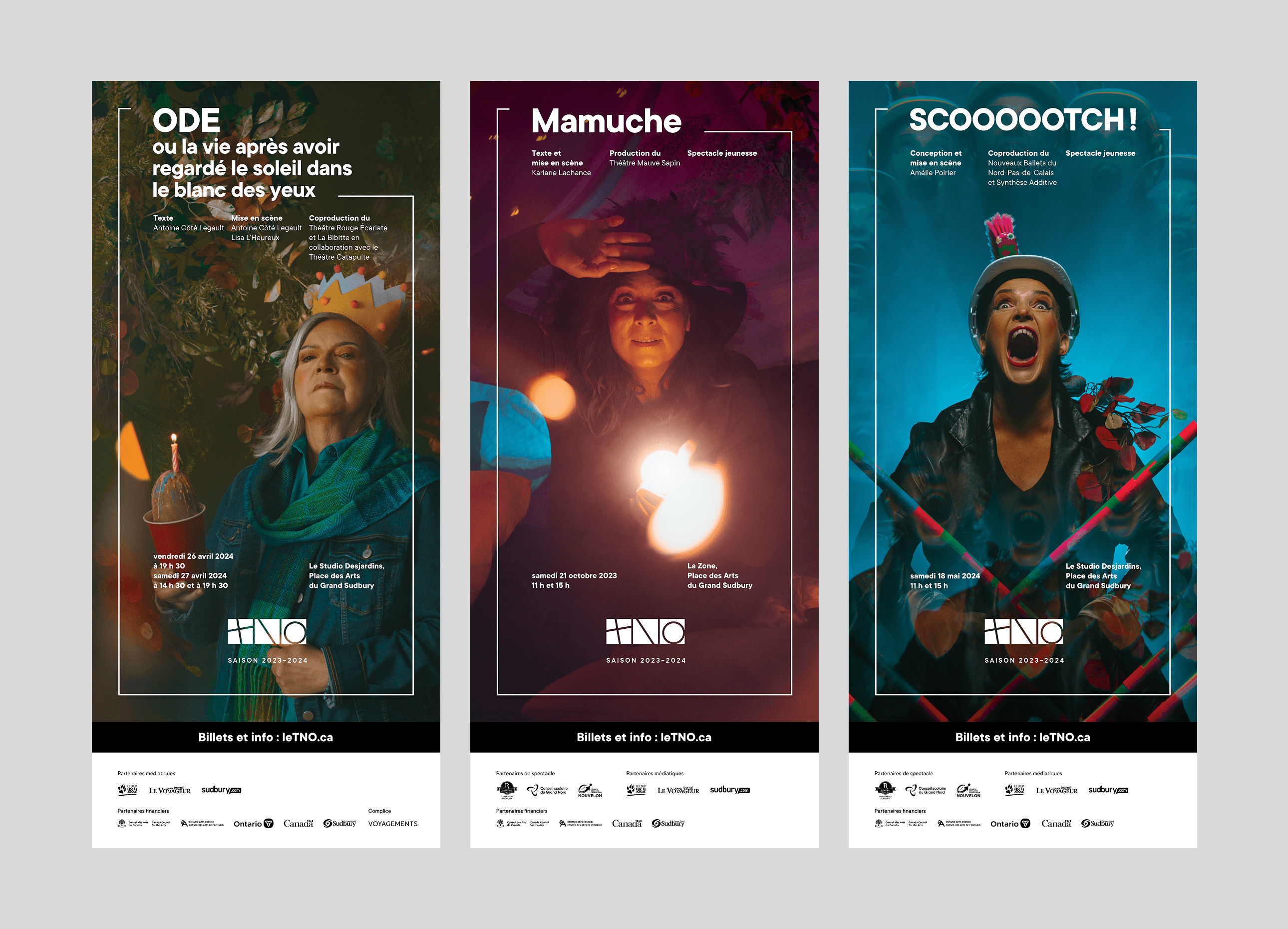 TNO's goal is to contribute to the development of theatre in Canada. As agency of record and season partner since 2018, Studio123 develops the creative direction for all visual communications to promote their programming. TNO has always allowed us to flex our creativity and push a strong direction leveraging various media like photography, animation, colour theory, type, bricolage, and more. We continue to collaborate closely to provide a bold creative voice to promote their programming year after year.