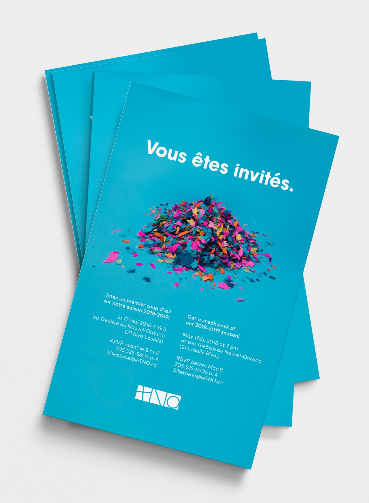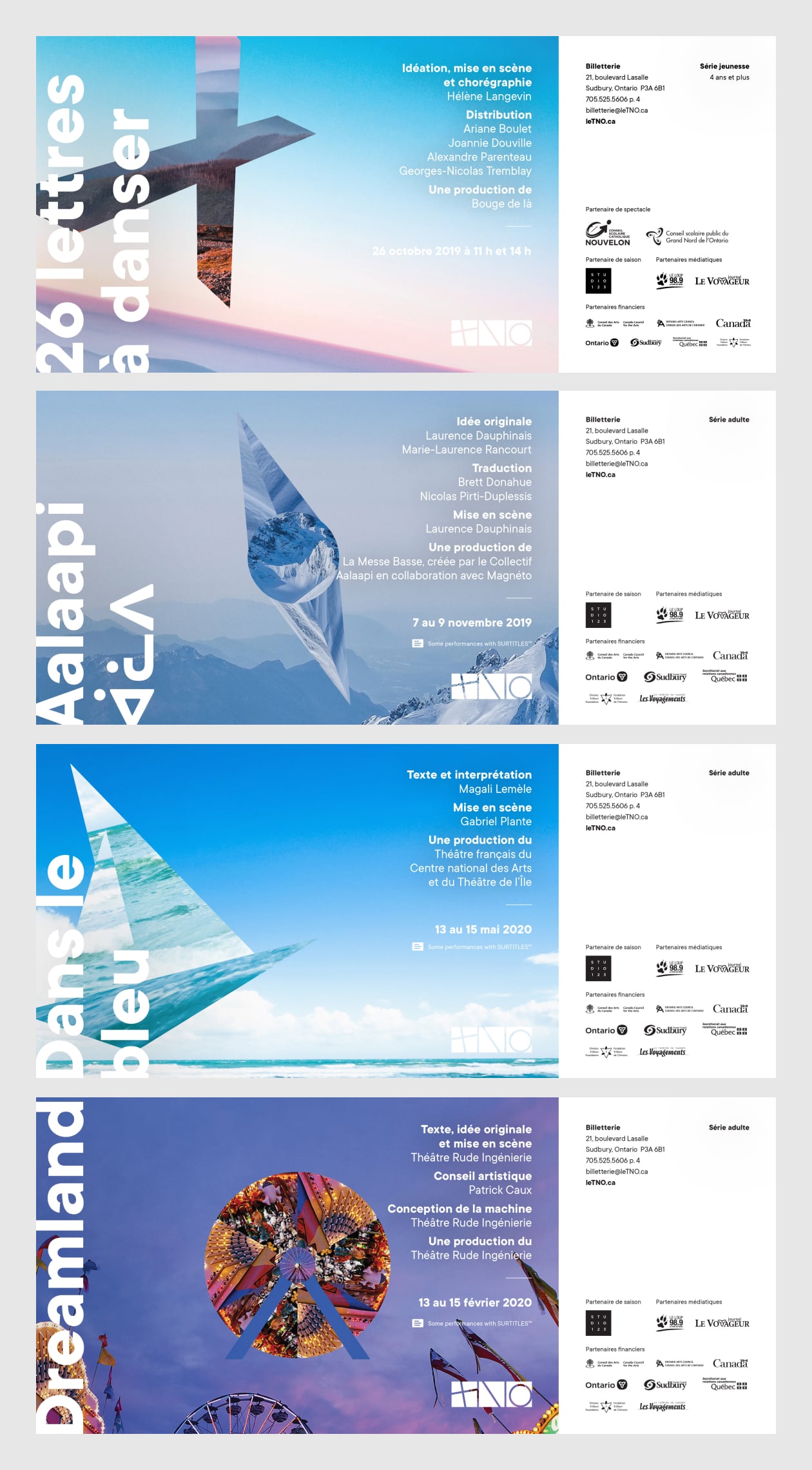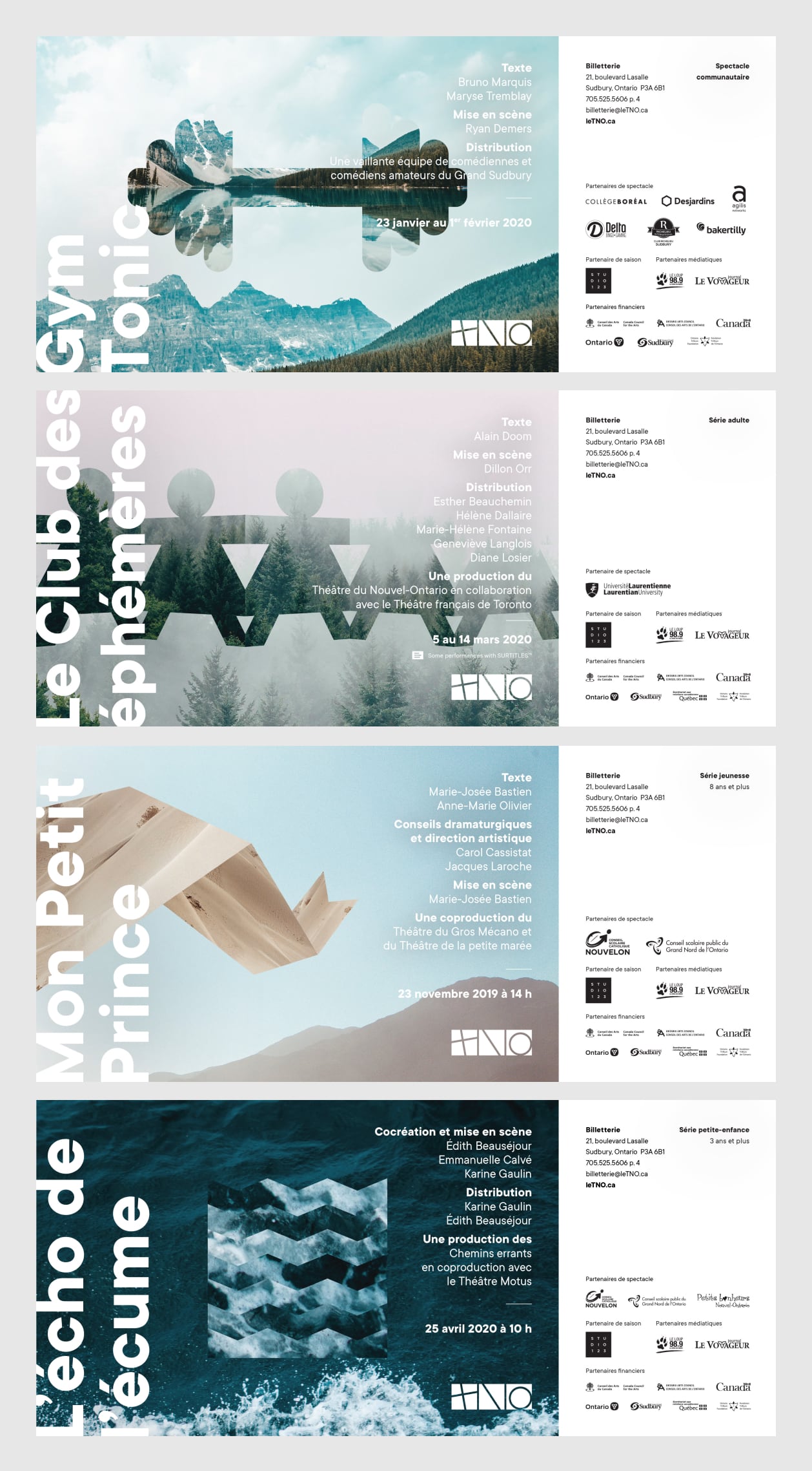TNO's goal is to contribute to the development of theatre in Canada. As agency of record and season partner since 2018, Studio123 develops the creative direction for all visual communications to promote their programming. TNO has always allowed us to flex our creativity and push a strong direction leveraging various media like photography, animation, colour theory, type, bricolage, and more. We continue to collaborate closely to provide a bold creative voice to promote their programming year after year.
