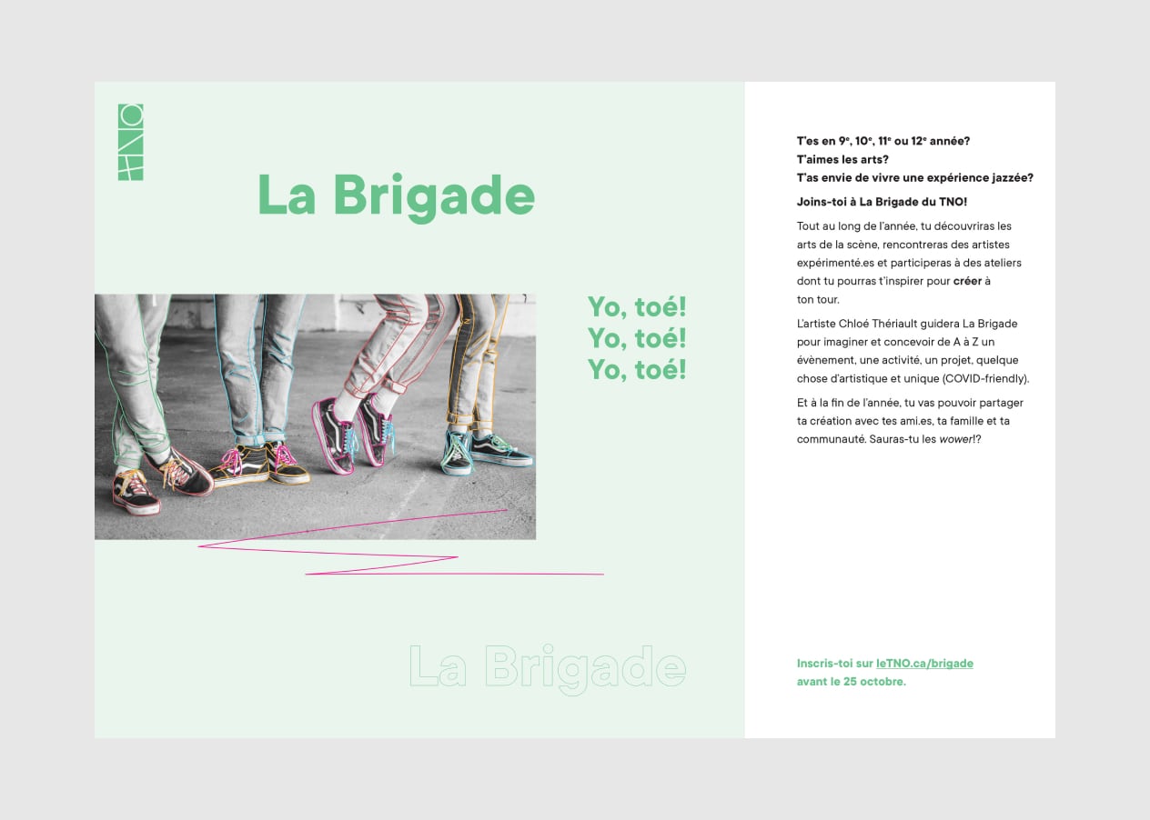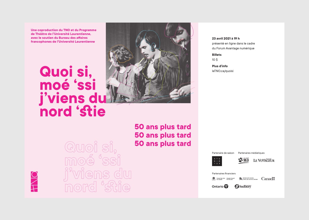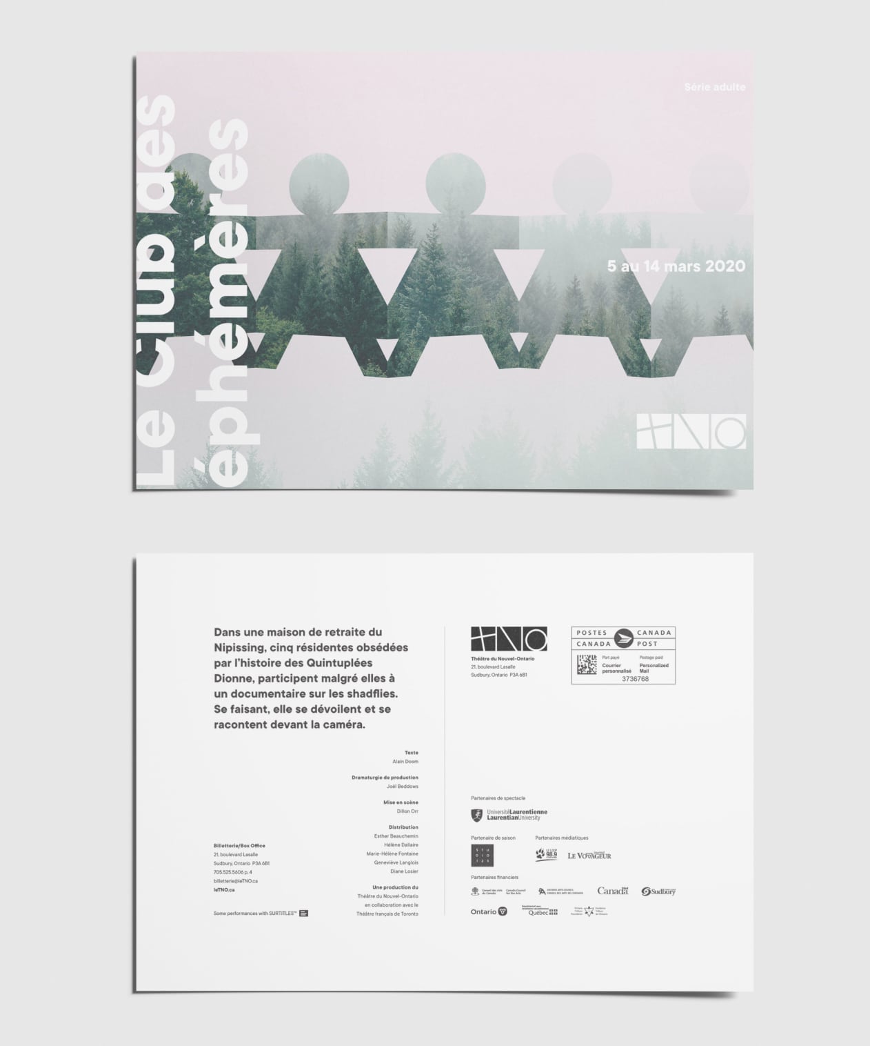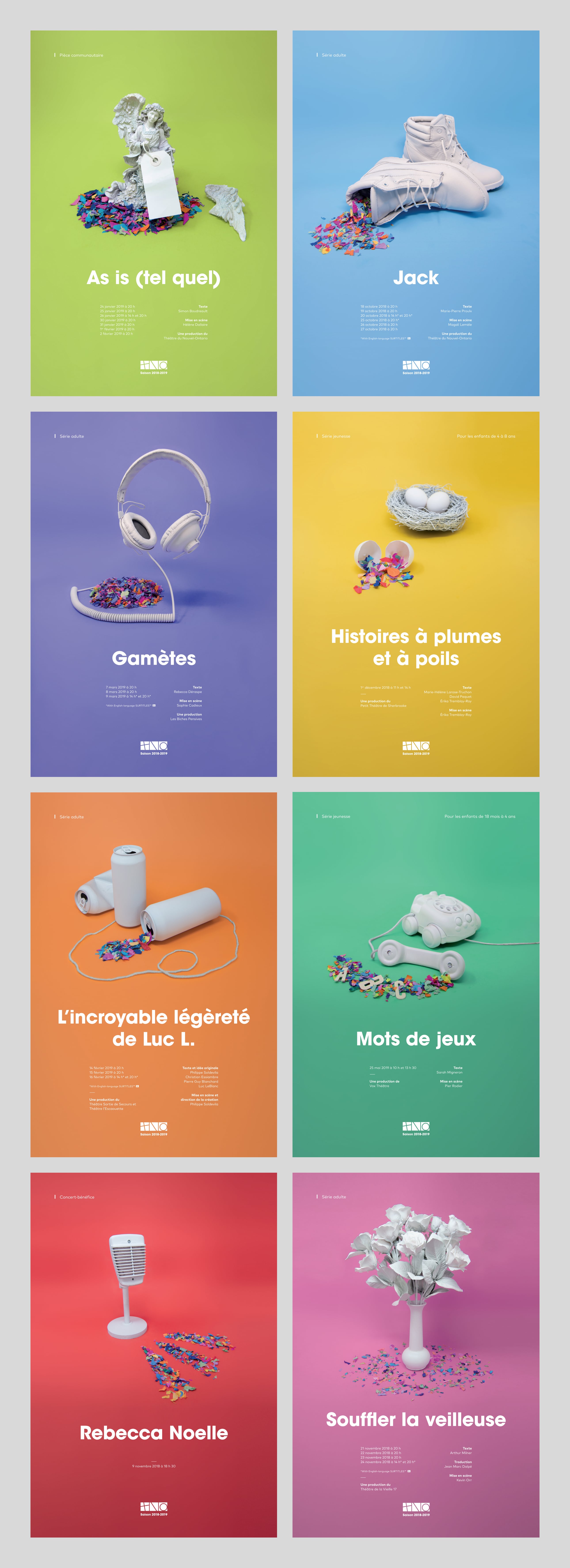 TNO's goal is to contribute to the development of theatre in Canada. As agency of record and season partner since 2018, Studio123 develops the creative direction for all visual communications to promote their programming. TNO has always allowed us to flex our creativity and push a strong direction leveraging various media like photography, animation, colour theory, type, bricolage, and more. We continue to collaborate closely to provide a bold creative voice to promote their programming year after year.