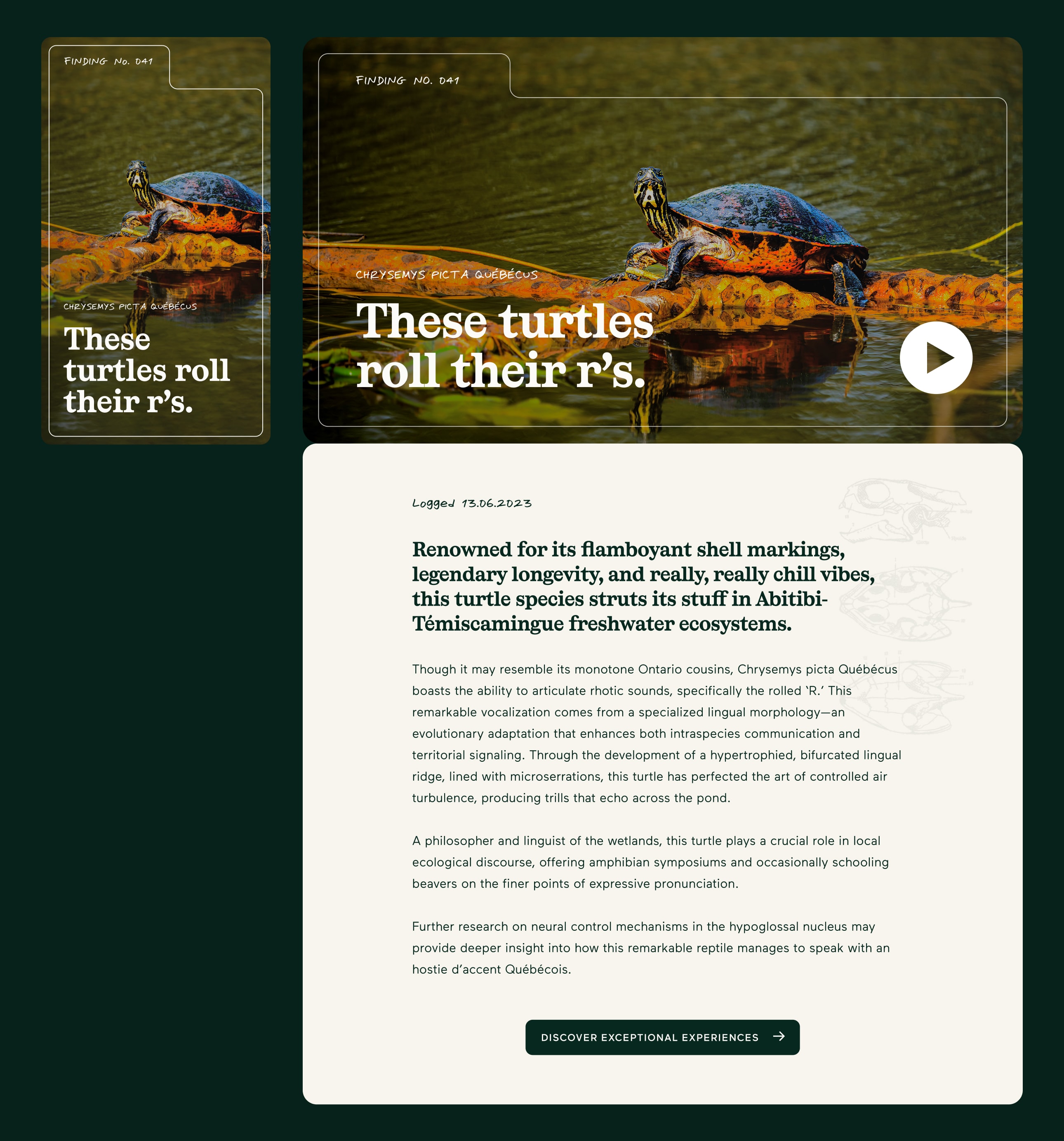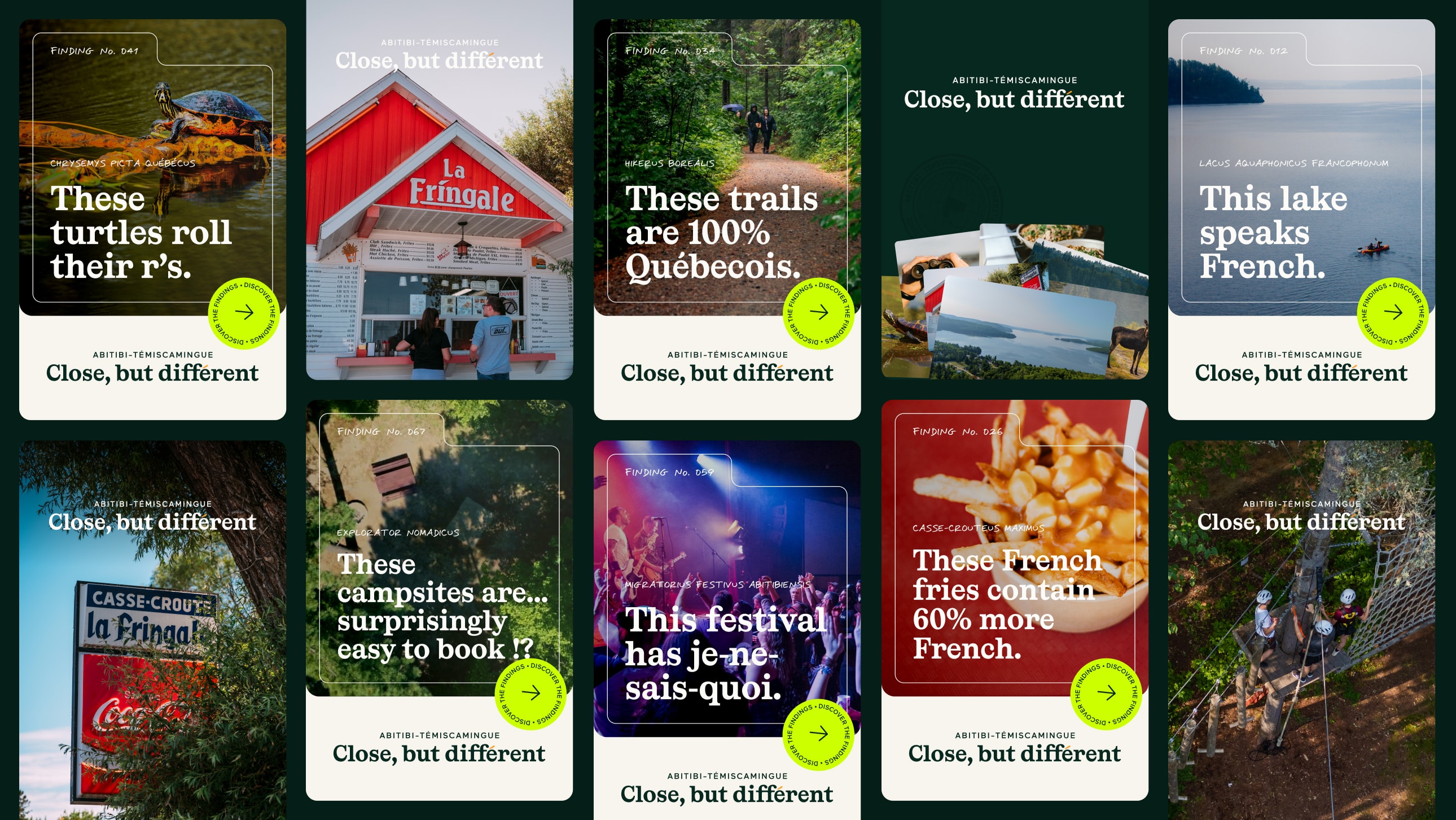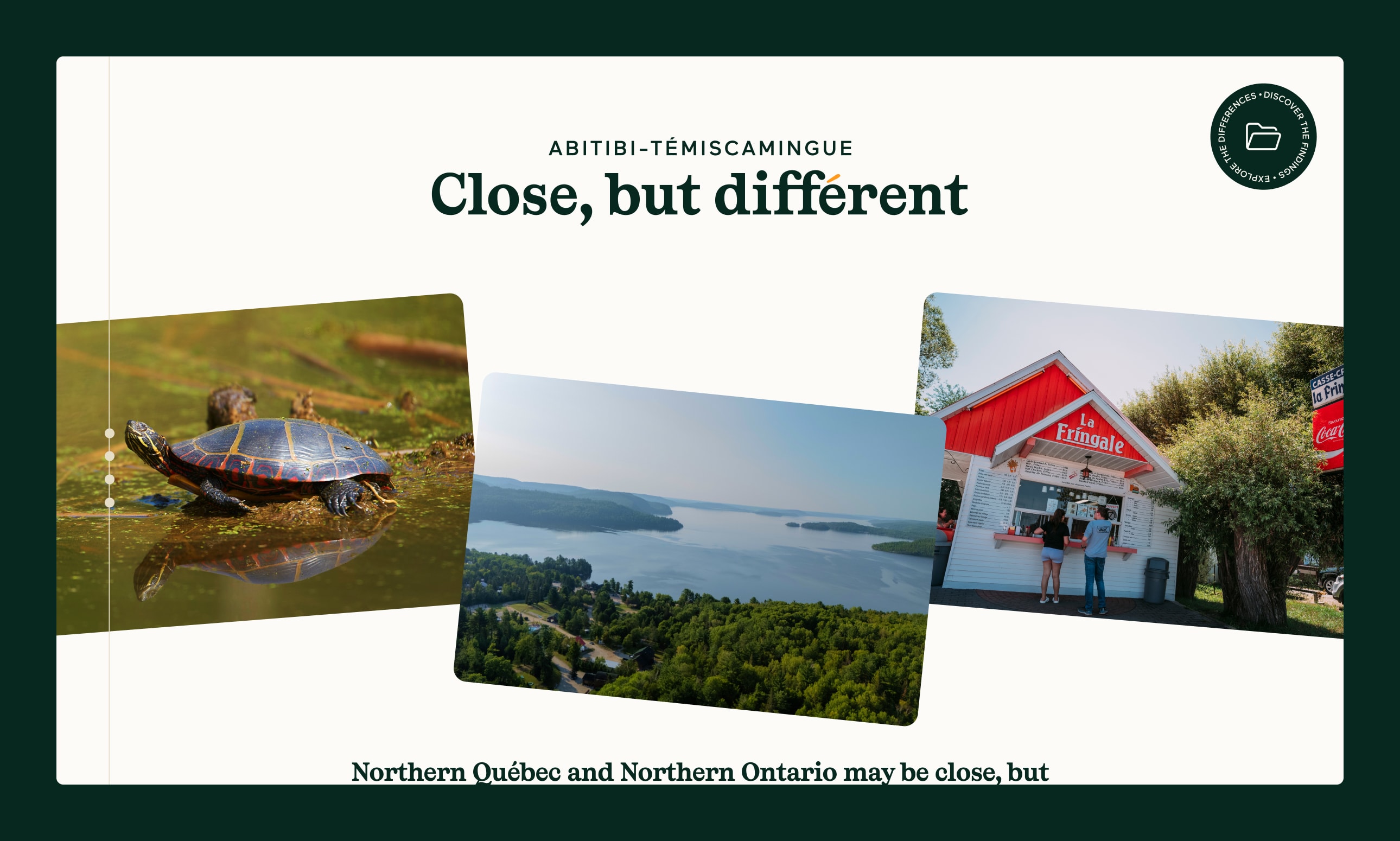 Close, but different is a tourism campaign for Tourisme Abitibi-Témiscamingue, designed to entice Ontario travellers to cross the provincial border into a place that feels both familiar and wonderfully unexpected.