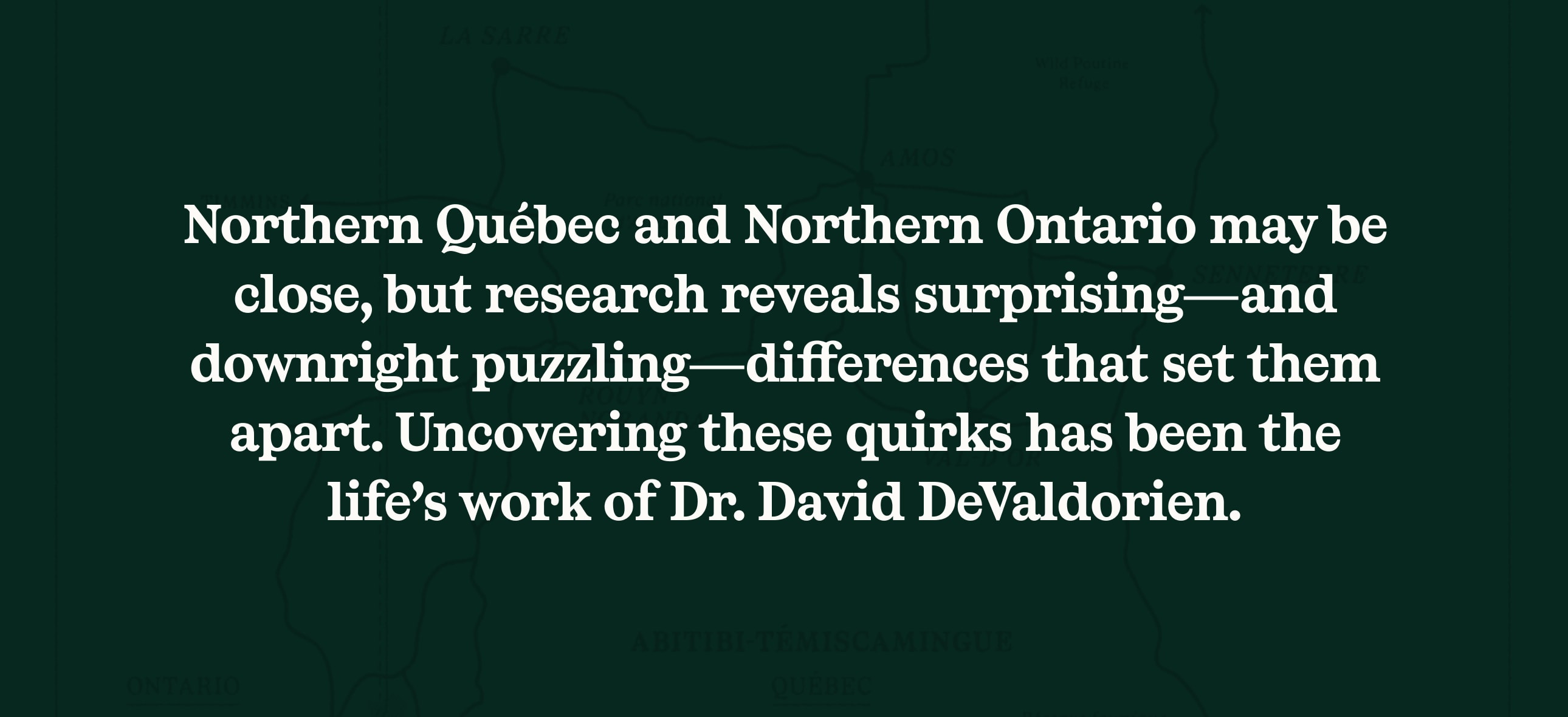 At the centre of it all is Dr. David DeValdorien: an eccentric explorer devoted to investigating humanity’s oddest cultural contrasts — from the Andes to the chip stands of Northern Québec. His latest research confirms what few have dared to suggest: while Northern Québec and Northern Ontario may look similar on a map, they are, in fact, profoundly, unscientifically, undeniably different.